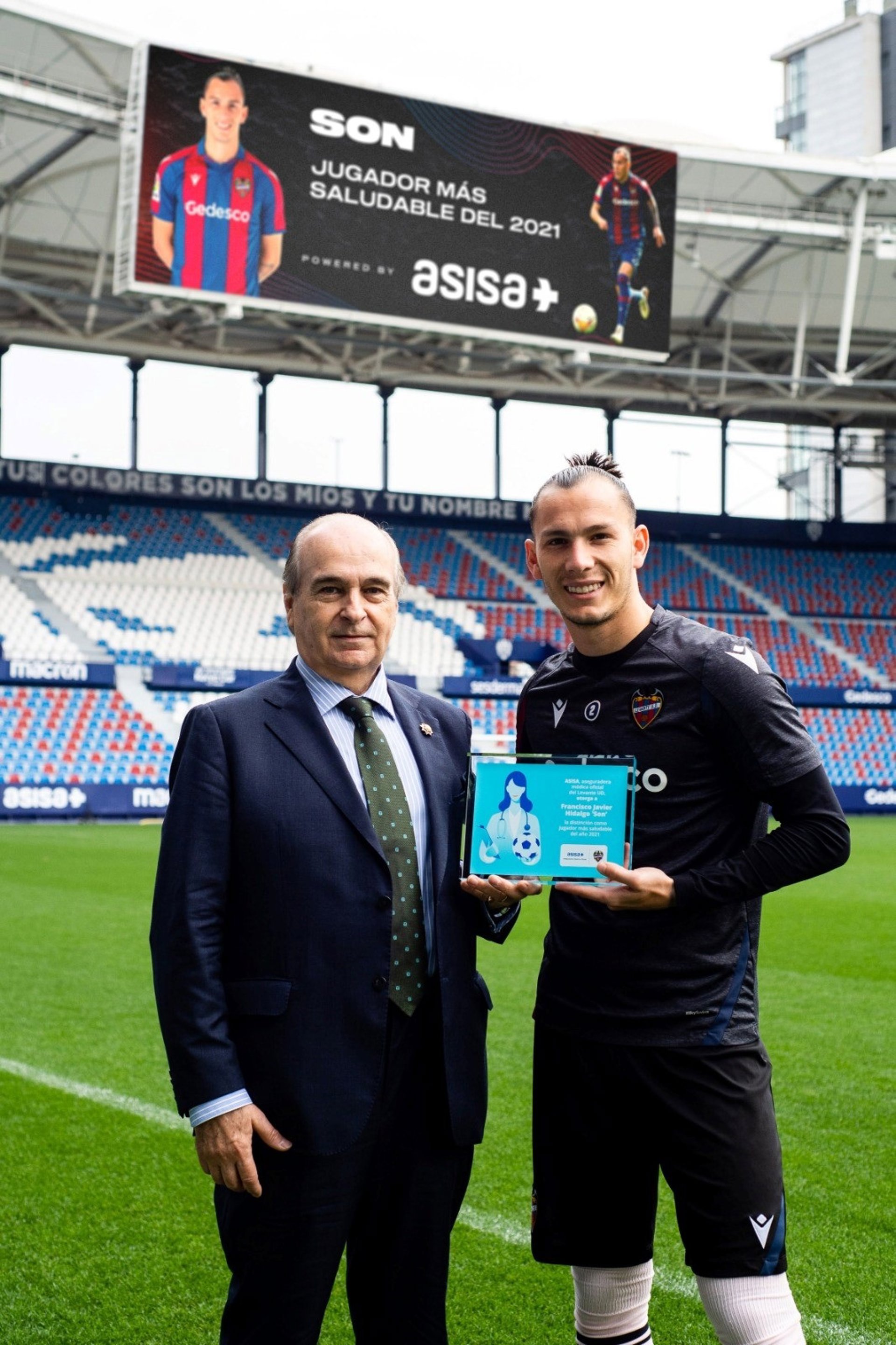 ASISA ha entregado al lateral derecho del Levante UD, Francisco Javier Hidalgo, de la mano del consejero de ASISA-Lavinia y delegado de la compañía en Valencia, Javier Gómez-Ferrer, el trofeo como 'Jugador más Saludable ASISA' del 2021.