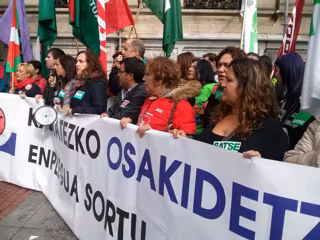Durante una concentración desarrollada ante la Delegación de Osakidetza en Bizkaia, en al que se han escuchado gritos de "Darpón dimisión", las centrales han exigido la recuperación del "empleo destruido" y han reclamado a los responsables del Servicio vasco de Salud "una negociación real".