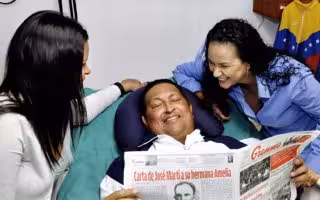 Hugo Chávez junto a sus hijas en Cuba