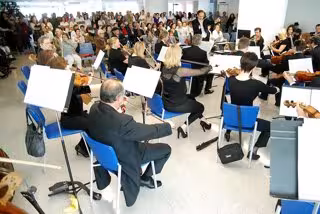 La Orquesta Sinfónica de Tenerife obsequió a los presentes con un recital, dirigido por Ángel Camacho y Patrick Doumeng, de más de una hora de duración que sorprendía a todas aquellas personas que acudían a una consulta o prueba diagnóstica.