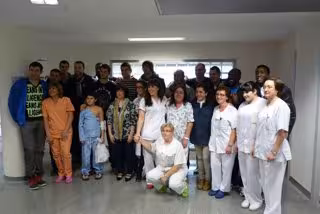 Una representación de la plantilla no ha querido dejar de saludar a las pacientes de la Unidad de Trastornos de Conductas Alimentarias, que han recibido a los campeones con gran ilusión, animándoles a conseguir la Copa Asobal que se celebra este fin de semana en Vigo.