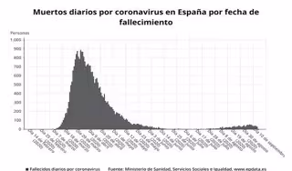 Además, 5.780 personas han fallecido en Cataluña como consecuencia del coronavirus (ocho en los últimos siete días); en Ceuta se han contabilizado siete fallecidos desde el comienzo de la pandemia (dos en la última semana); en la Comunidad Valenciana 1.515 (21 en los últimos siete días); en Extremadura 538 (ocho en una semana); en Galicia 674 (20 en los últimos siete días); en Madrid 8.818 (72 en los últimos siete días); en Melilla tres (ninguno en los últimos siete días); en Murcia 169 (tres en los últimos siete días); en Navarra 542 (seis en los últimos siete días); en el País Vasco 1.587 (tres en los últimos siete días); y en La Rioja 382 (ocho en los últimos siete días).