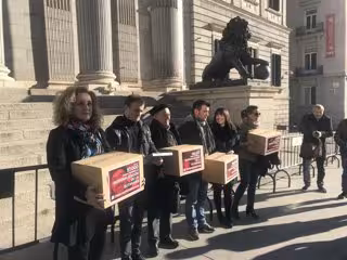 "Hemos venido a entregar las firmas pidiendo que de despenalice la eutanasia, pidiendo que el derecho a decidir sobre el final de la propia vida deje de ser un delito. Que las personas podamos decidir cómo queremos morir, y cuando la vida no tenga sentido, tengamos el derecho de irnos de una forma digna", ha dicho Asun Gómez, viuda de Luis de Marcos, responsable del inicio de esta petición en mayo de 2017.