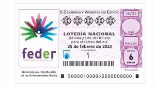 La Sociedad Estatal de Loterías y Apuestas del Estado (SELAE) va dedica el décimo de Lotería Nacional de este sábado, 25 de febrero, a la Federación Española de Enfermedades Raras (FEDER).