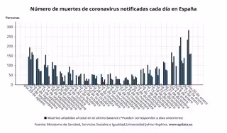 Número de muertes de coronavirus notificadas cada día en España - EUROPA PRESS