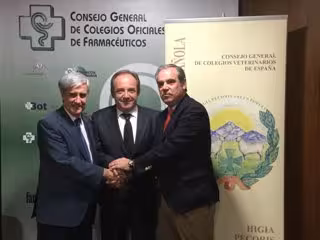 El Consejo General de Colegios Farmacéuticos y el Consejo General de Colegios Veterinarios de España han firmado un acuerdo marco de colaboración para trabajar conjuntamente en el sistema de receta electrónica veterinaria. Tienen como objetivo diseñar un modelo de integración entre el sistema de receta electrónica 'Prescrivet' del consejo de veterinarios y el programa de dispensación de medicamentos veterinarios, denominada 'Nodo de Servicios Farmacéuticos', del consejo de farmacéuticos.