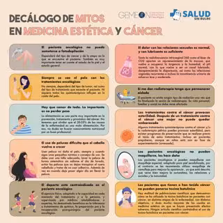 En este decálogo se explican diez mitos entre los que se encuentran: 'El paciente oncológico no puede someterse a fotodepilación', la realidad es que depende del tipo de cáncer y de la etapa en la que se encuentre el paciente; 'Siempre se cae el pelo en los tratamientos oncológicos', esto depende del tratamiento y del tipo de tumor o 'El uso de pelucas dificulta que el cabello vuelva a crecer', la realidad es que no daña el pelo siempre y cuando se sigan los consejos de uso.