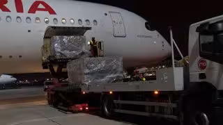 El tercer vuelo del Corredor Aéreo Sanitario, gestionado por Grupo Oesía, Iberia y la Federación Española de Empresas de Tecnología Sanitaria (Fenin) ha llegado este miércoles con una carga de 3 millones de mascarillas.