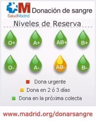 La Comunidad de Madrid necesita en los próximos dos o tres sangre del AB-, por lo que insta a los madrileños que cuenten con esta tipología a que se acerquen a los centros de donación de la región, según ha informado el Ejecutivo autonómico.