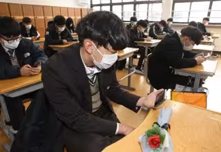 11 February 2020, South Korea, Busan: Students watch a small-scale graduation ceremony via YouTube at Yeongsan High School, as the school cancelled a graduation ceremony at its auditorium and decided to hold a scaled-down version amid fears over the spr - -/YNA/dpa