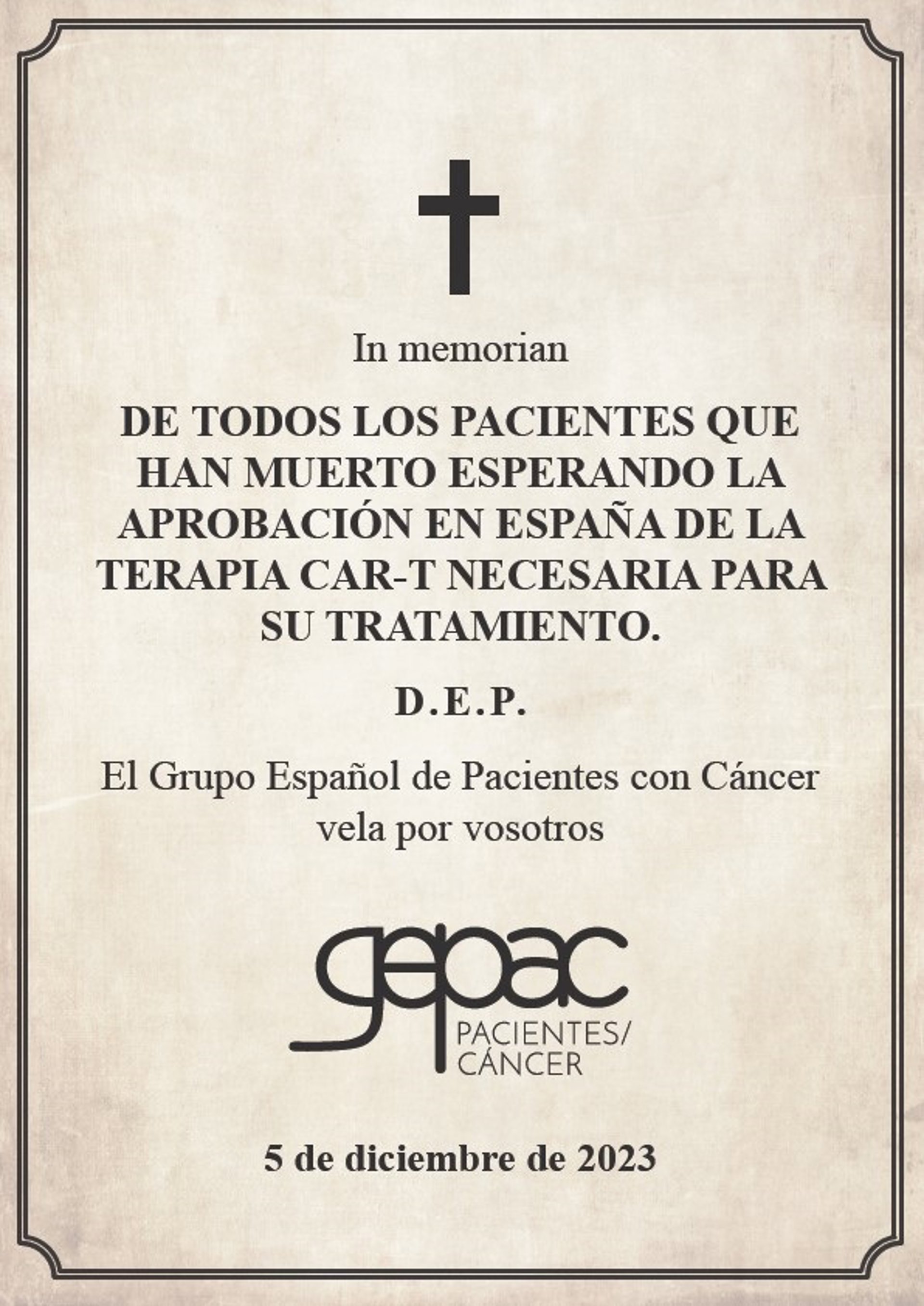 Pacientes con Cáncer envían a García una esquela por los pacientes muertos esperando el acceso a las terapias CAR-T - GEPAC