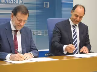 El presidente del Gobierno, Mariano Rajoy, ha ratificado este sábado con su firma el convenio con 28 millones de euros para las obras de Valdecilla, aprobado ayer, viernes, en el Consejo de Ministros, un acto celebrado en Santander junto al jefe del Ejecutivo regional, Ignacio Diego.