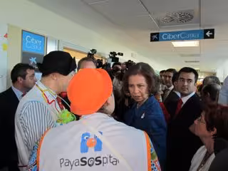 A la salida, Doña Sofía ha roto el protocolo y se ha dado la vuelta para pararse a saludar unos momentos a unos payasos de la organización PayaSOShopital que le han llamado su atención al grito de 'Buenas Noches, Melchor'. La pareja, que visitan a todos los niños ingresados de lunes a jueves para entretenerlos durante su estancia bajo el nombre de mina Mercromina y doctor Max Recetax, se han mostrado "muy emocionados" por haber hablado con la Reina unos segundos, que han aprovechado para entregarle un calendario de su ONG.