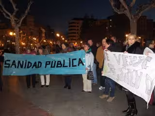 Más de medio centenar de personas se han concentrado esta tarde frente al Palacio de Gobierno de La Rioja en defensa de la sanidad pública riojana. Los concentrados bajo el lema "se vende tu salud", piden "que se de marcha atrás en los recortes en la sanidad pública tanto en personal como en prestaciones".