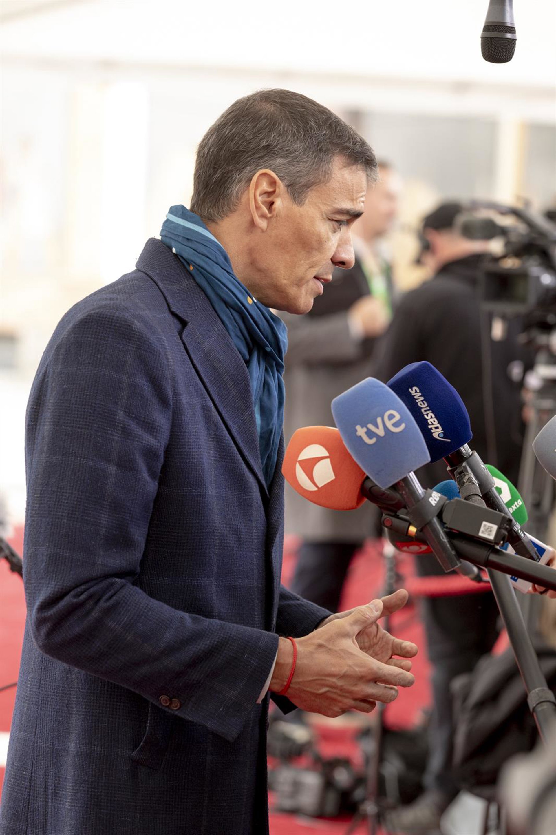 El presidente del Gobierno, Pedro Sánchez, atiende a los medios a su llegada a la Reunión informal de Jefes de Estado y de Gobierno de la Unión Europea, en Copenhague (Dinamarca). - Pool Presidencia Consejo Europeo