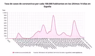 Respecto a la incidencia media actual de contagios en España en los últimos 14 días, el informe muestra que sube ligeramente, situándose en los 43,26 casos por cada 100.000 habitantes, en comparación con los 43,15 notificados ayer por el departamento dirigido por Carolina Darias.