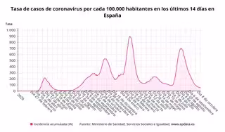 Respecto a la incidencia media actual de contagios en España en los últimos 14 días, el informe muestra que sigue disminuyendo, situándose ahora en los 54,12 casos por cada 100.000 habitantes, en comparación con los 57,91 notificado el viernes por el departamento dirigido por Carolina Darias.