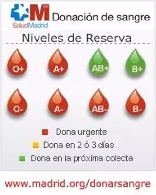 Estos seis niveles de sangre se encuentran en nivel rojo, lo que significa que las necesidades son urgentes. Por otro lado, se ha decretado nivel verde para el tipo AB+ y B+, es decir, que las personas con este grupo sanguíneo pueden donar en la próxima colecta.