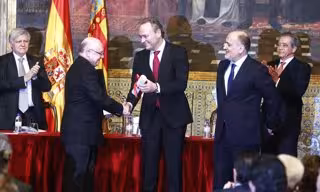 El acto, que se ha celebrado en el Palau de la Generalitat, ha estado presidido por el jefe del Consell, Alberto Fabra, quien ha estado acompañado por el presidente del Tribunal Constitucional, Francisco Pérez de los Cobos, por el presidente de la Fundación, Rafael Giner y de un miembro de la Orden galardonada, el hermano José Luis Fonseca, así como por diferentes personalidades políticas de Valencia y representantes de la sociedad.