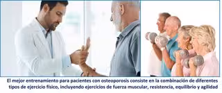 Una de las rehabilitadoras del Infanta Elena, la doctora Nathaly Villa, subraya que "las recomendaciones actuales indican que el mejor entrenamiento para pacientes con osteoporosis consiste en la combinación de diferentes tipos de ejercicio físico", incluyendo ejercicios "de fuerza muscular, resistencia, equilibrio y agilidad".