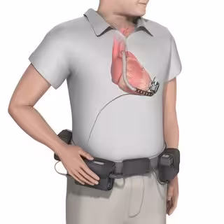 La bomba de flujo continuo de este dispositivo funciona gracias a un pequeño 'ordenador' externo que el paciente lleva consigo, conectados entre sí mediante un pequeño cable de unos 40 centímetros que sale fuera del cuerpo por debajo del ombligo.