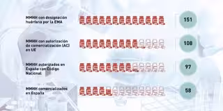 No obstante, a pesar de ese incremento, a fecha septiembre de 2019 se han comercializado más medicamentos huérfanos (10) que en todo el año 2018 (8). Otro de sus hallazgos está relacionado con el número de medicamentos huérfanos autorizados por la EMA que obtienen Código Nacional (CN) en España: de los 97 medicamentos que tienen asignado CN, solo se comercializan 58, lo que supone un 60 por ciento.