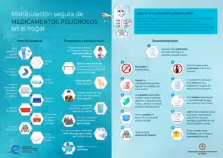 Para las propias enfermeras, quienes deben tener especial precaución en el manejo de estos fármacos, el organismo también ha elaborado una infografía en formato díptico que resume la Guía para la monitorización de superficies con medicamentos peligrosos, un documento de fácil lectura para la monitorización de los medicamentos peligrosos en las unidades de enfermería, fuera del servicio de Farmacia Hospitalaria.