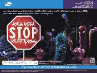La compañía biofarmacéutica Pfizer ha puesto en marcha la campaña Actúa 'Ahora-Stop Resistencias', con el objetivo de impulsar la sensibilización sobre la resistencia a los antibióticos, promoviendo su uso racional, y en apoyo a la Semana mundial de concienciación sobre el uso de los antimicrobianos 2020, que se celebra del 18 al 24 de noviembre.