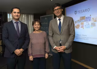 "El equipo de Tesaro trabaja con pasión para traer medicamentos innovadores a las personas que se enfrentan con valentía al cáncer. Estamos plenamente dedicados a crear nuevas terapias mediante el establecimiento de alianzas para poder satisfacer las necesidades de la comunidad oncológica, ahora y en el futuro", ha comentado el vicepresidente senior y director general internacional de Tesaro, Orlando Oliveira.