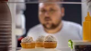 Archivo - Hombre con sobrepeso, hambriento, mirando pasteles de crema edela nevera por la noche. - GETTY IMAGES/ISTOCKPHOTO / MOTORTION - Archivo