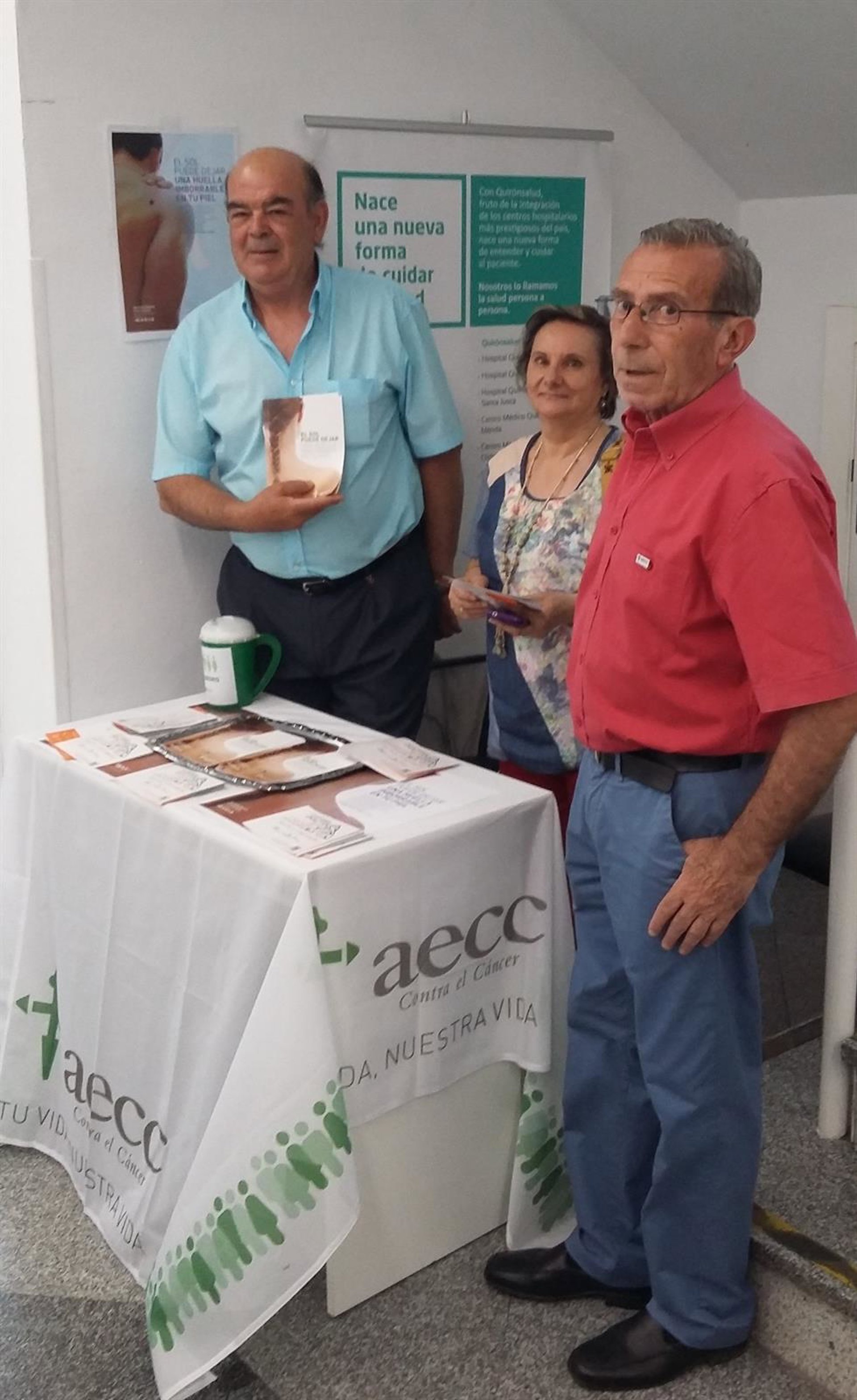 Un grupo de voluntarios de la Asociación Española Contra el Cáncer (AECC) han acudido al Hospital Quirónsalud Clideba (Badajoz) para celebrar la campaña 'El sol puede dejar una huella imborrable en tu piel', con el objetivo de trasladar a la sociedad recomendaciones para reducir el daño del sol y detectar precozmente un cáncer de piel.