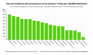 Respecto a las pruebas diagnósticas, desde el pasado 9 de noviembre y hasta el 15 de noviembre se han realizado 1.111.297, de las cuales 787.571 han sido PCR y 323.726 test de antígenos. La tasa total de positividad se sitúa en el 12,12 por ciento.