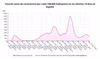 Respecto a la incidencia media actual de contagios en España en los últimos 14 días, el informe muestra que sigue reduciéndose, situándose en los 166,32 casos por cada 100.000 habitantes, en comparación con los 173,78 notificado ayer por el departamento dirigido por Carolina Darias.