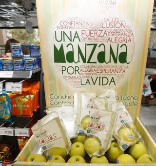 La campaña 'Una manzana por la Vida', que tuvo lugar los días 4 y 5 de noviembre, recaudará fondos tanto en los establecimientos como en las empresas y de forma online, que se destinarán íntegramente a los servicios de rehabilitación de la  Fundación Privada Madrid contra la Esclerosis Múltiple (FEMM). El proyecto ha superado con éxito la cifra del año anterior vendiendo casi 50.000 manzanas solidarias.
