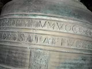Igualmente, en la campana 'Brbera' de la Catedral de Valncia, de 1681, aparece una frase similar pero más genérica: 'Satán fugo', es decir 'Hago huir a Satán', en referencia a que "alejó el mal de vosotros", según Llop. Bajo esta inscripción, aparece una imagen de la Virgen con el Niño en esta campana, que hasta finales del siglo XVIII "también se hacía oscilar para ahuyentar las tormentas", explica Llop.