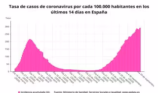 Actualmente hay 10.941 pacientes ingresados por Covid-19 en toda España y 1.535 en una UCI, si bien en las últimas 24 horas se han producido 1.209 ingresos y 1.389 altas. La tasa de ocupación de camas ocupadas por coronavirus se sitúa ya en el 9,41 por ciento y en las UCI en el 17,98 por ciento.