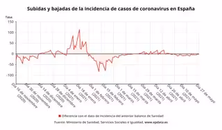 Respecto a la incidencia media actual de contagios en España en los últimos 14 días, el informe muestra que sigue reduciéndose, situándose en los 125,02 casos por cada 100.000 habitantes, en comparación con los 126,30 notificado ayer por el departamento dirigido por Carolina Darias.