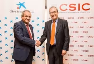 El presidente del Consejo Superior de Investigaciones Científicas (CSIC), Emilio Lora-Tamayo, y el director general de la Obra Social La Caixa, Jaume Lanaspa, han firmado este jueves la renovación del convenio de colaboración en los proyectos de divulgación científica 'Ciudad ciencia' y 'El mar a fondo' que se llevarán a cabo a lo largo del curso 2013-2014, una iniciativa a la que la entidad financiera destina 380.000 euros.