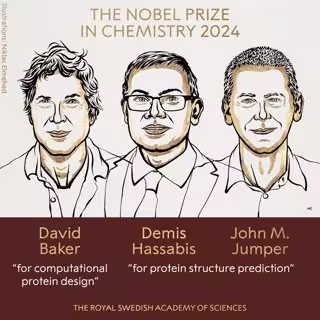 La Real Academia Sueca de Ciencias ha decidido otorgar el premio 2024 Premio Nobel de Química a David Baker de la Universidad de Washington (EEUU), "por el diseño computacional de proteínas", y a Demis Hassabis y John M. Jumper de Google DeepMind de Londres (Reino Unido) "por la predicción de la estructura de proteínas".