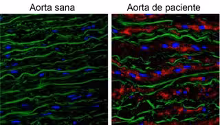 El estudio, dirigido por Juan Miguel Redondo, investigador en el CBMSO, y Miguel R. Campanero, del CBMSO, ha identificado un aumento significativo de los niveles del proteoglicano Versicano, una proteína del espacio extracelular, en la arteria aorta de pacientes con síndrome de Marfan y en un modelo animal de esta enfermedad (ratones Marfan).