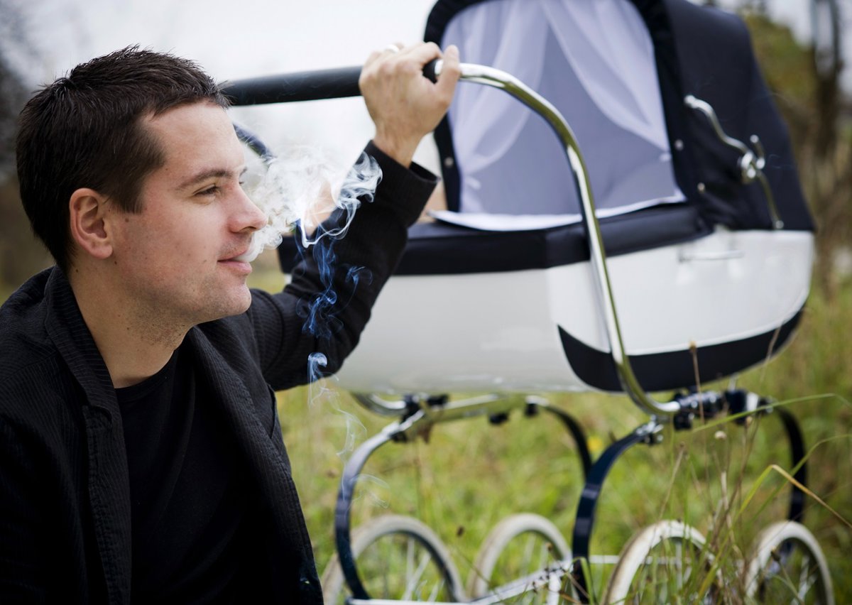 Archivo - Padre fumando junto al cochechito de un bebé. - ISTOCK - Archivo
