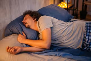 Archivo - Hombre adulto medio roncando en la cama por la noche - URBAZON/ ISTOCK - Archivo