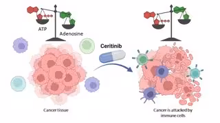 Al inicio del estudio, había un total de 50 agentes diferentes aprobados para determinadas enfermedades que inhiben las proteínas quinasas. El grupo de investigación los examinó todos, y con éxito: "Una de las sustancias, el ceritinib, también bloquea la conversión de ATP por parte de CD39. Pudimos demostrarlo no sólo en el tubo de ensayo, sino también en cultivos con las llamadas células de cáncer de mama triple negativo. Éstas son extremadamente difíciles de tratar: normalmente apenas responden a las terapias".