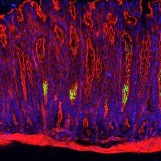 Asimismo, han podido demostrar que las células estromales que rodean la base de la glándula inhiben continuamente la vía de señalización de BMP, estimulando así la proliferación de células madre cercanas. Por el contrario, se descubrió que las células del estroma en la superficie de la glándula activan la vía de señalización, lo que suprime la proliferación celular. Esto forma un gradiente de señalización que guía la renovación y diferenciación de las células madre,La infección por Helicobacter provoca la liberación de sustancias proinflamatorias como el interferón-gamma (IFN-y)