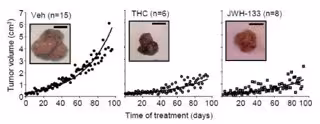 En ambos casos (en el modelo animal 'MMTVneu' y en las células tumorales humanas) el efecto antitumoral de estos compuestos parece estar mediado por el receptor de cannabinoides 'CB2'. Los efectos psicotrópicos asociados al uso del cannabis se deben fundamentalmente a la activación del receptor 'CB1', que es el que se expresa predominantemente en el sistema nervioso.