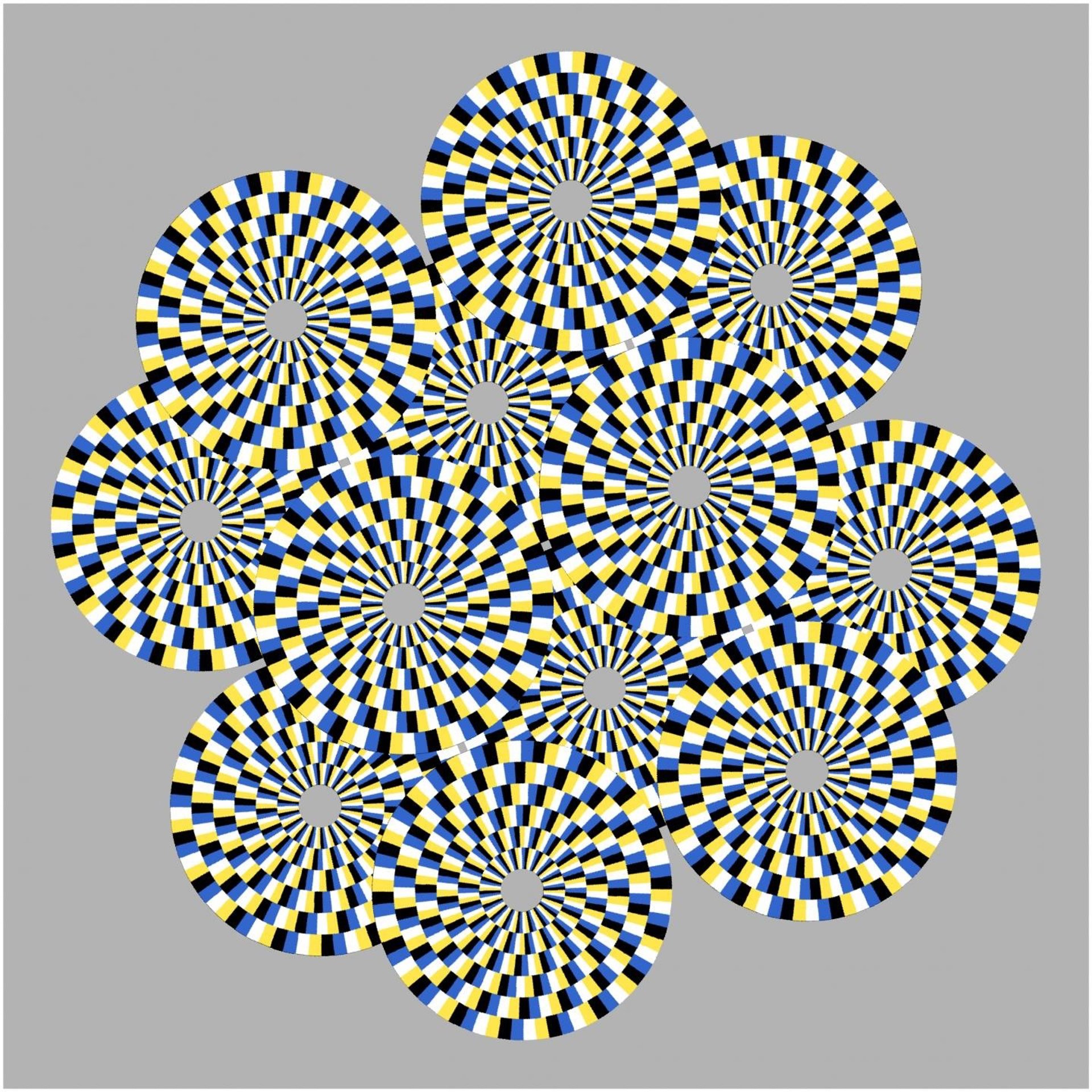 Ilusión óptica en la que círculos parecen girar en diferentes direcciones. - A. KITAOKA; ILLUSTRATED BY R. TANAKA