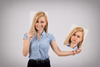 Archivo - Mujer joven cambiando de humor de estar feliz a enfadarse y enojarse - SONERCDEM/ ISTOCK - Archivo