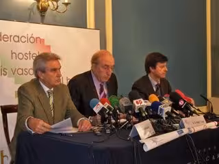 En una rueda de prensa en Bilbao, responsables de las asociaciones de hostelería han explicado el impacto de la nueva normativa en materia de consumo de tabaco, que, en palabras del secretario general de la Federación de Hostelería, Ángel T. Gago, altera el modelo de ocio "por decreto" y en la que han "echado en falta" la búsqueda de "una convivencia".