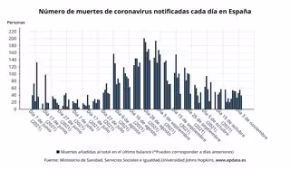 En el informe de este miércoles se han añadido 39 nuevos fallecimientos, en comparación con 51 el miércoles pasado. Hasta 87.462 personas con prueba diagnóstica positiva han fallecido desde que el virus llegó a España, de acuerdo con los datos recogidos por el Ministerio. En la última semana han fallecido 57 personas con diagnóstico de COVID-19 positivo confirmado en España.